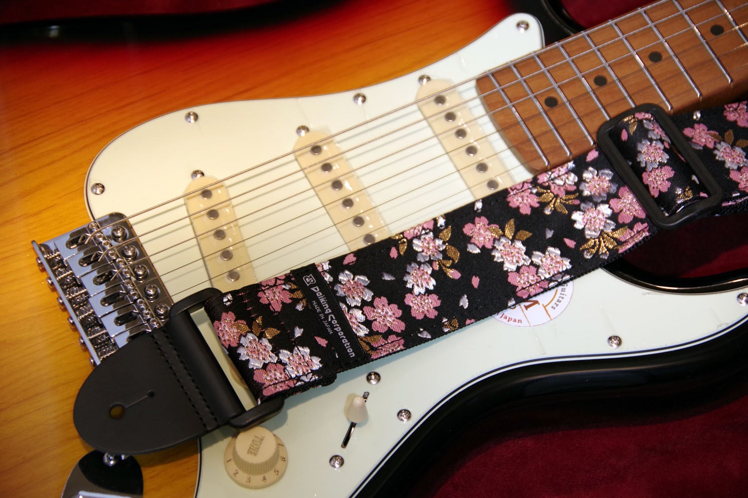 Daiking西陣織りギターストラップ”金襴桜黒”