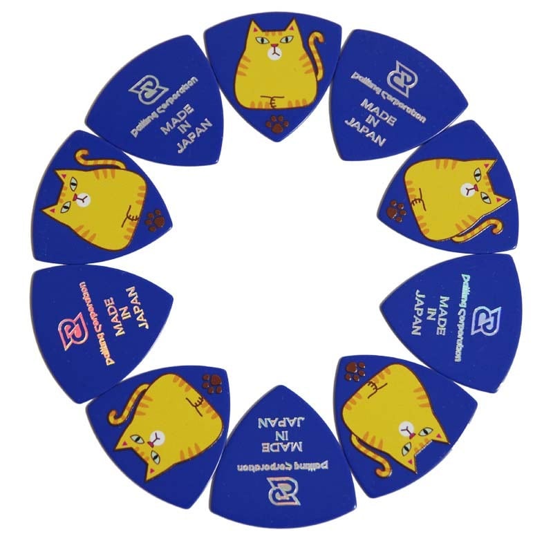 Daikingオリジナルデザインの茶トラピックトライアングル厚さ1.0mmの50枚パックです。突然ですが有名メーカーのギターピックはほとんどが日本製では無いです。日本製との違いは材質の精度の違いです。研磨、耐久性、印刷の精度、印刷の耐久性もです。持ったときのフィーリングが1番大事なのでいちがいに国による違いだけではありませんが、できるだけ品質の良いものが欲しい方にはおすすめできるピックです。